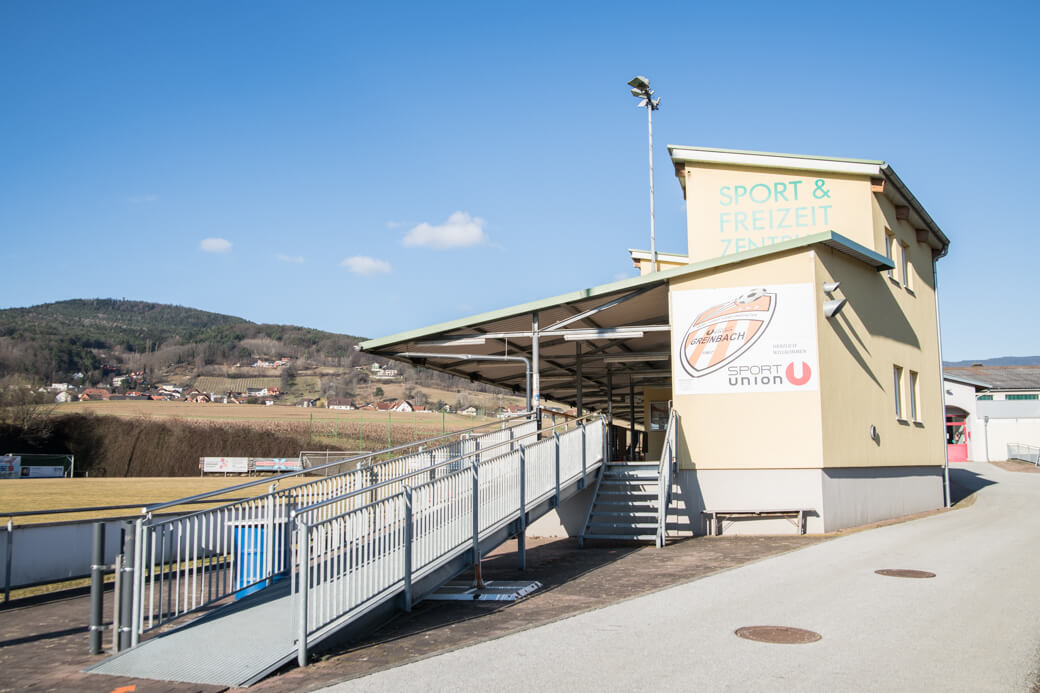 Die Sportanlage in Greinbach befindet sich im Ortsteil Neudorf und besteht aus einem zweigeschoßigem Gebäude mit diversen Kabinen, einem Ausschank- und einem Fitnessbereich. Hier angebaut finden Sie die Freizeithalle Greinbach, die sich einerseits für Festveranstaltungen eignet und andererseits auch als Tennishalle genutzt wird.